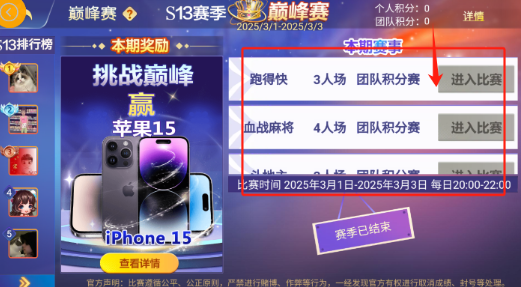 圣坛斗地主是一款超人气的休闲棋牌手游。它在经典的斗地主玩法基础上,融入了独特的神话与奇幻元素,让你能在充满神秘氛围的「圣坛」中,与其他玩家展开一场场刺激的对决。游戏以其精致的神话风格画面、公平公正的对战系统和丰富多样的赛事活动为特色,旨在为你打造一个全新的斗地主平台,让你随时随地,都能享受斗智斗勇的棋牌乐趣。 圣坛斗地主巅峰赛怎么参加1、进入游戏主页,选择巅峰赛; 2、进入巅峰赛后板块后,即可看到本期的赛事,选择感兴趣的模式即可参加。 圣坛斗地主如何改名字1.在主页点击左上角的头像 2.使用微信登录的账号改了微信名字后就可以同步改游戏内的名字 圣坛斗地主如何获得金币1.进入游戏主页后点击左侧的获得金币。 2.然后就可以看到有4种方式来获得金币。 |