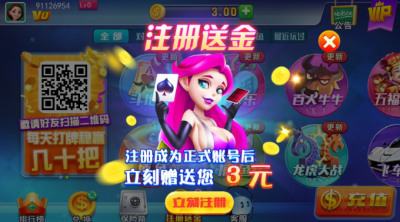 赢三张棋牌下载是一款手机棋牌类游戏,具有简单易上手的特点,深受广大玩家喜爱。玩家可以在游戏中体验到刺激的对战乐趣,与好友一起组队对战,展示自己的棋牌技能。 赢三张棋...