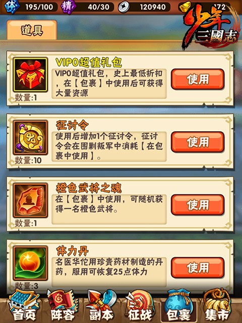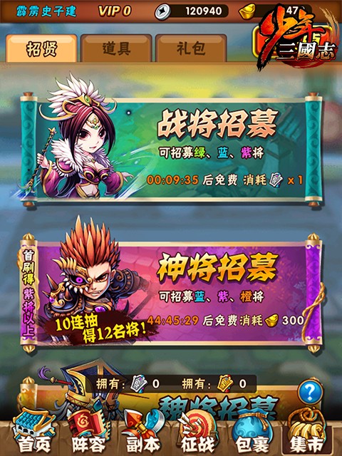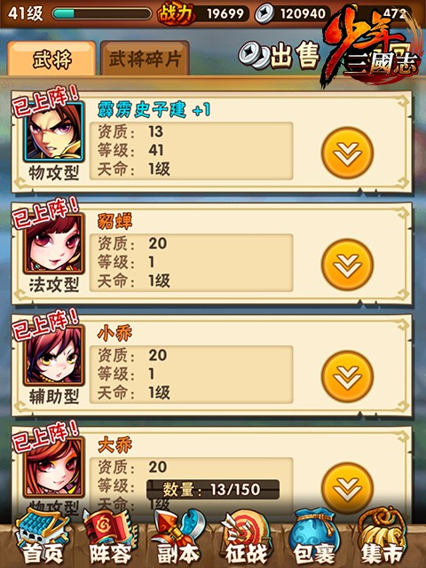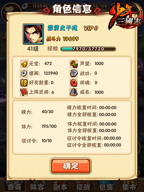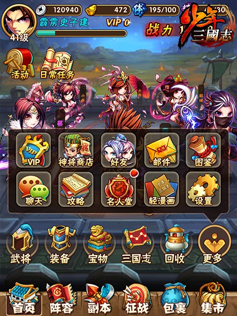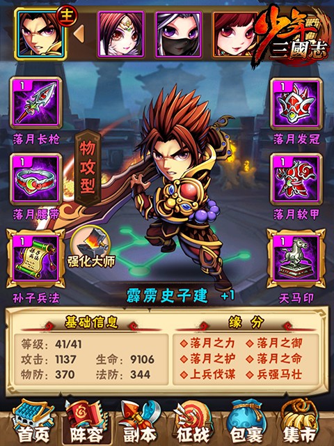 少年三国志是一款以三国历史为背景的卡牌手游,玩家可以收集各种武将卡牌,组成自己的阵容,通过不断升级提高实力,参与各种战斗。游戏中有多种玩法,包括故事模式、竞技场、副本等等,同时还有丰富的社交系统和活动。游戏画面精致可爱,音效优美动听,非常适合喜欢三国题材的玩家们。 少年三国志阵容推荐最新20251、蜀群暴力流蜀霸,关羽,水镜,菜菜(或月英),南华,吕布核心思路:主关羽,副蜀霸,吕布零星即可,关羽越高星越好。关羽一号位,蜀霸五号位。本阵容主要是保证先手的暴力,又有一定的续航能力。 2、吴群暴力流吴霸,周瑜,二斗,菜菜(或香香),南华,吕布核心思路:主周瑜,副吴霸。同样吕布零星即可,撑面板攻击,可以大大增加吴国的输出。 3、魏蜀控制流曹操,魏霸,紫虚,甄姬,关羽,月英(或者水镜)核心思路:主曹操,副魏霸。看曹操的超合击,控制很强,偏肉,而神意技能的必暴击状态是随机二人也不稳定,所以感觉爆发相对于其他国家并不强,反而是先手可以稳控,变得很肉所以我推荐蜀国混搭,因为玩魏国的平民可以升三星曹操,免疫暴击伤害,又有高额最终减伤,这有了续航的资本,关羽的持续回血会锦上添花的。 4、群魏双面流吕布,群霸,南华,菜菜,曹操,甄姬(或者紫虚)核心思路:主吕布,副群霸。吕布可谓够霸气,指挥、神意、超合击都带面板攻击加成,别小看面板攻击加成带来的收益,南华就是个例子,但是吕布的面板攻击上限远比南华高,超合击的buff只加给一人,加70残暴和40%面板攻击,第一回合马的伤害非常高,可以想象到在单核平民中他的恐怖之处。 少年三国志怎么玩首先,映入眼帘的是咱们的主界面 亲爱的将军看到茫茫多的按钮啦,数字的是不是有点点晕乎呢?下面小编来给你一个个介绍~ 点击界面左上角主角的头像后可以查看当前的基本信息哦! 界面最上方一排从咱们帅气的主角头像往右看,分别代表了银两(游戏内用于强化装备等),元宝(可以用来抽将,以及购买各种道具哦),体力值(要是为0就不能打副本了呢),精力值(和其他玩家较量的时候需要有精力哦!竞技场挑战需要一定的精力值)。 元宝下方的亮晶晶的vip标识,代表了您尊贵的vip身份象征,战力值则基本体现了您的队伍目前的实力情况,向着更高的战力进发吧! 接下来在人物头像下方可以看到“活动”按钮和“日常任务”按钮。 其中点击“活动”按钮后可看到当前游戏的所有活动信息,包括签到,迎财神等等。 点击“日常任务”按钮进入日常任务界面后可查看每日任务以及完成进度,还可查看成就相关信息。 下面小编给大家再介绍下其余各个按钮的功能。 最下方的“首页”按钮,可以让您处在任意界面(战斗界面除外)时都可以快速返回主界面。 点击“阵容”按钮则可以让您查看您当前上阵的武将的相关信息。 点击“副本”按钮则可以让您快速进入副本界面,去挑战副本,其中包括“主线副本”、“名将副本”和“日常副本”!在您不知道该干点嘛的时候,点这里永远是对的! 点击“征战”按钮后,您可以看到“竞技场”,“夺宝”,“三国无双”,“围剿叛军”等功能,点击对应的功能模块即可进入对应的界面去挑战。 点击“包裹”按钮可以查看你身上所拥有的道具,包括体力丹,精力丹以及各种强化石头等等。 点击“集市”按钮后,首先看到的是武将招募的界面,通过点击对应的按钮进行不同的武将招募体验;点击此界面的“道具”页签则可以进行各种游戏内道具的购买;点击此界面的“礼包”页签则可以购买vip礼包。 主界面下方的“武将”按钮,点击后可查看现有所有武将和武将碎片的信息。 主界面下方的“装备”按钮,点击后可查看现有所有装备和装备碎片的信息。 主界面下方的“宝物”按钮,点击后可查看现有所有宝物信息。 主界面下方的“三国志”按钮,点击后可以看到现在的三国志命星情况以及对应的属性加成情况,并可以通过消耗三国志残卷来点亮命星。 主界面下方的“回收”按钮,点击后可以进行“武将分解”,“装备分解”,“武将重生”和“宝物重生”操作,回收会返还之前消耗在对应武将、装备或者宝物上的所有资源。并且可以点击此子界面中的“神将商店”按钮,点击后可进入“神将商店”购买武将碎片等相关道具。 点击主界面的“更多”按钮后,可以看到剩余的一些功能,比如查看vip特权,进入神将商店,查看好友,查看邮件,查看游戏内现有武将的图鉴,进入聊天界面与其他玩家交流,查看攻略,查看名人堂玩家,欣赏轻漫画以及进行系统设置等。 |