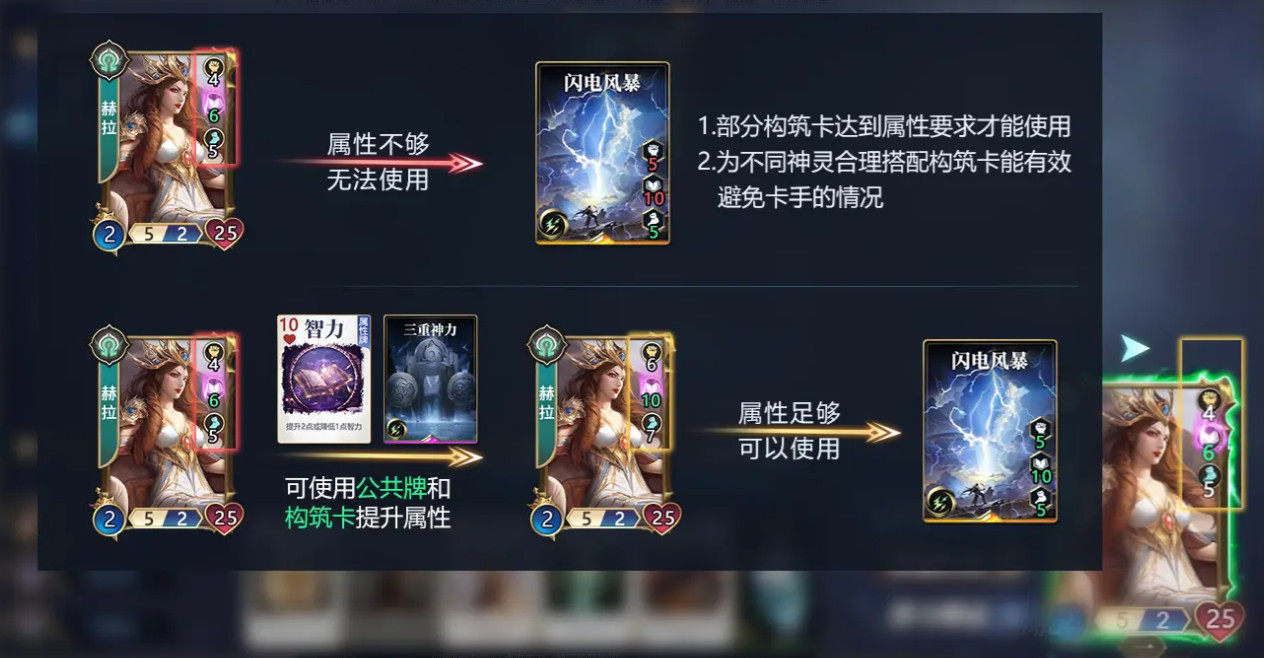 诸神竞技场中囊括了世界历史中各个神话故事当中的神明,你可以在这个游戏中通过完成任务和抽卡的方式来收集自己喜欢的神话人物,组成自己的牌组与其他玩家们进行pvp的决斗,灵活多变的战术和卡牌组合将会让你可以打出万种策略。 诸神竞技场游戏图鉴一、神灵图鉴 索尔 拉 伏羲 二、构筑图鉴 战神祝福 永恒之枪 能量法杖 诸神竞技场怎么玩1.在《诸神竞技场》中,每位神灵都拥有三大基础属性:力量、智力、速度。在基础属性中,每位神灵拥有一个独特的主属性。 在游戏中,主属性会以醒目的发光特效显示, 方便玩家快速识别。 2.根据主属性,神灵会获得相应的【属性增益】技能,三种属性的增益方向各不相同。力量增益可以提升神灵的攻击力;智力增益可以加强神灵的法术输出;速度增益可以摸更多的牌。这些属性增益技能将在游戏进行到第三回合时得到进一步强化,加快游戏节奏。 3.许多构筑卡牌都对神灵的属性值有一定要求, 只有满足了这些要求,才能激活构筑卡的强大效果! |