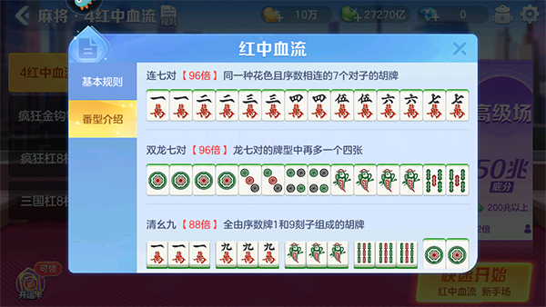 打麻将一直都是很多小伙伴所喜欢的,小编的妈妈在家没事的时候也会去打麻将,开运麻将将现实中的麻将搬到了手机之上,玩法非常丰富,支持用抖音和头条的账号进行登录,喜欢麻将的小伙伴一定不要错过了! 开运麻将怎么更改名字?1、进入游戏后,点击上方头像 2、随后选择更改名字 3、最后输入想要更改的名字即可 开运麻将怎么玩一、 出牌 玩家每个轮次都需要打出一张手中的麻将牌,无论之前是摸牌,还是吃牌、碰牌或者杠牌,这些操作之后都是要打出一张牌的。因此,打麻将最常见的操作就是出牌。 二、 常见操作 打麻将最常见的操作有: 1、吃牌:只有当自己的上位玩家打出的牌能与自己手中的两个麻将牌一起组成顺子时,可以将该张麻将牌与自己手中的两张一起放置于门前,并喊出“吃”。 2、碰牌:当任意玩家打出的牌能与自己手中的两个麻将牌一起组成刻子时,可以将该张麻将牌与自己手中的两张一起放置于门前,并喊出“碰”。 3、杠牌:无论是其他玩家打出或者自己摸到形成四张相同的麻将牌型时,可以将四张相同的麻将放置于门前,如果是自己摸到四同张则暗刻与门前,并喊出“杠”,杠牌之后需要从牌墙尾端补一张牌。 三、 麻将胡牌 打麻将胡牌最重要的一点是手中的牌型满足胡牌指定的合法牌型,因此每位玩家一定要详细掌握以下合法牌型: 1、基本牌型 AA + ABC + AAA,这种胡牌牌型玩家手中必须至少有一对牌,剩余的牌型由顺子或刻子组合而成; 2、特殊牌型 ①七对 AA AA AA AA AA AA AA ②碰碰胡 AA AAA AAA AAA AAA ③十三幺 AA A A A A A A A A A A A A ④全不靠 A A A A A A A A A A A A A A |