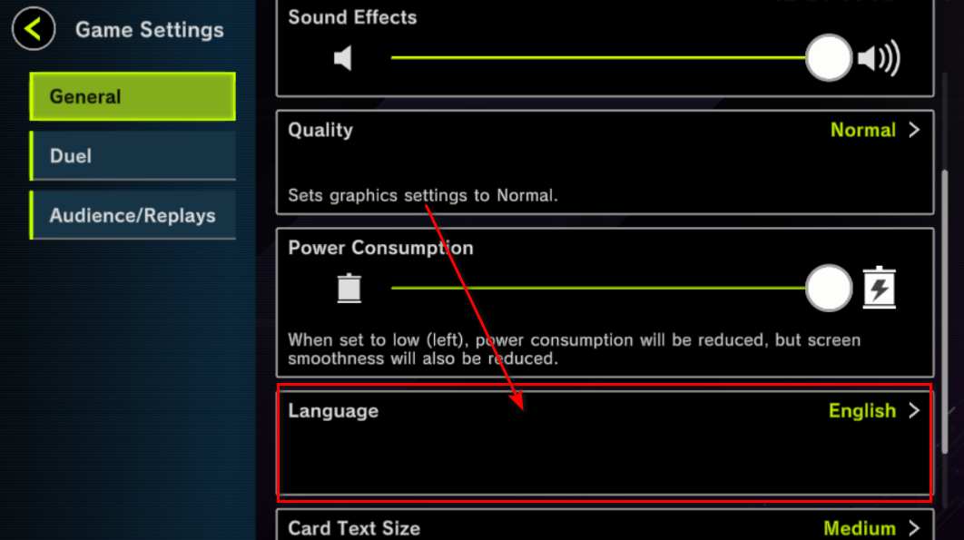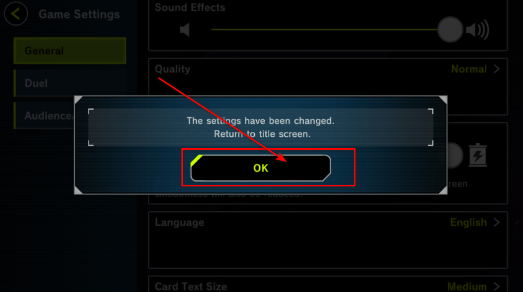 游戏王大师决斗是一款高质量卡牌对战手游,完美还原《游戏王》卡牌规则和对战机制。游戏内包含丰富的卡组构建系统,玩家可自由收集上万张卡牌,打造个性化牌组参与激烈对决。无论是老玩家还是新手,都能通过详细的教程和单人模式逐步掌握策略与技巧。 游戏王大师决斗怎么调成中文1.进入游戏后,在主界面点击右上角的三道杠 2.接着点击游戏设置 3.然后在General界面往下滑,找到语言选项 4.继续点击 5.滑到最下方就能看到简体中文啦,选择它 6.然后点击ok 7.继续点击ok 8.这样语言就改好啦 游戏王大师决斗怎么继承账号1.进入游戏,点击右侧三道杠 2.找到数据继承 3.大家可以选择对应的账户绑定就可以继承了 |