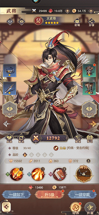 幻想名将录是一款以三国历史人物为背景的放置卡牌游戏。游戏采用了国风画风,打造了一个唯美神秘的游戏世界。玩家可以收集、培养各种三国英雄,并组建自己的最强阵容。除了传统的PVE副本和PVP对决外,游戏还增加了诸如跨服竞技、限时挑战等多种玩法,让玩家在游戏中不断挑战自我,提升实力。同时,精美的画面和优秀的音效也为游戏增加了不少乐趣。 幻想名将录怎么玩1、进入游戏后,玩家可以首先将日常任务完成 2、然后在点将台中,玩家使用元宝可以召唤新武将,新武将可以在征战中安排布阵战斗 3、通过给武将升级、穿戴装备,可以使武将的战斗、血量、防御属性的提升 4、玩家想要升官职时,需要完成下方阶段中的所有任务,官职越高属性也会越高 5、商铺中可以购买各种武器、道具、武将和皮肤等 6、玩家在擂台中可以与其他玩家一起擂台比赛,胜利后会获得积分,达到一定积分数后可以获得相对的元宝奖励 |