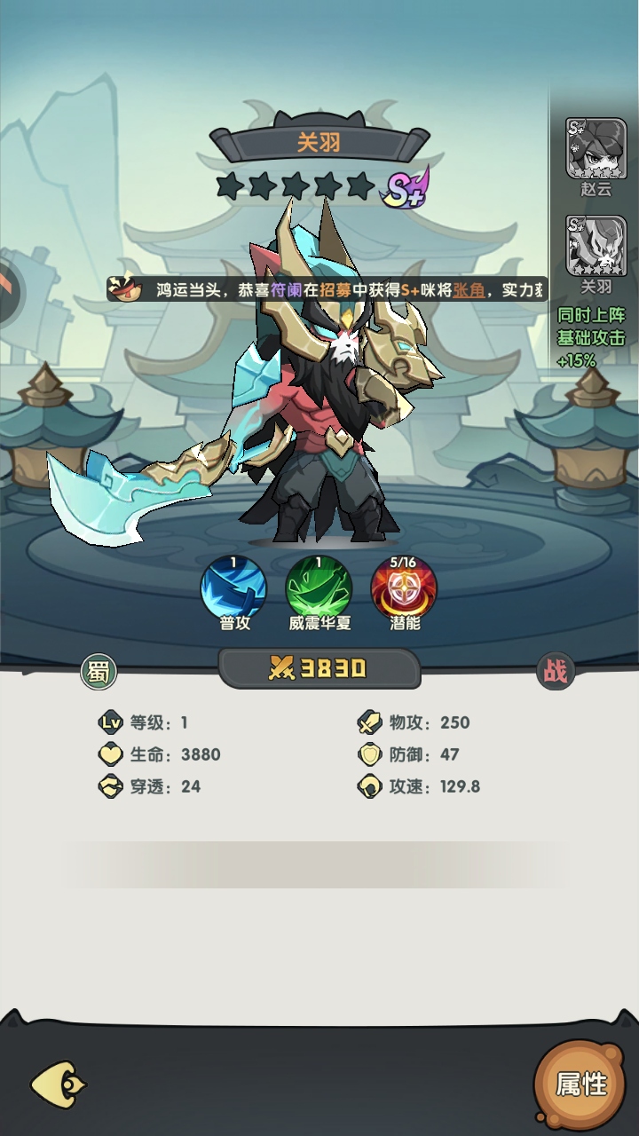 天选英雄是一款融合了三国题材与卡牌养成、放置挂机元素的策略手游。游戏将三国名将以独特风格呈现,玩家将化身主公,招募并培养各路英雄豪杰,组建强大阵容。其核心玩法包括自动战斗、策略布阵、多样副本挑战和PVP竞技。旨在让玩家在轻松放置中也能感受三国征战的热血,体验指尖上的策略较量与英雄养成乐趣,轻松打造你的三国霸业。 天选英雄阵容推荐搭配一:董卓、华雄、关羽、黄月英、黄忠 搭配二:诸葛亮、马超、周瑜、张飞、祝融 搭配三:张飞、貂蝉、曹不、凌统、周瑜 搭配四:公孙瓒、诸葛亮、夏侯惇、孟获、黄忠 天选英雄最厉害的三个角色TOP1:赵云 TOP2:华佗 TOP3:诸葛亮 |