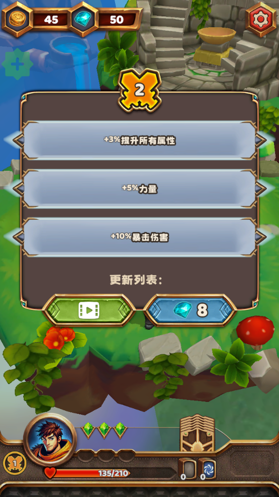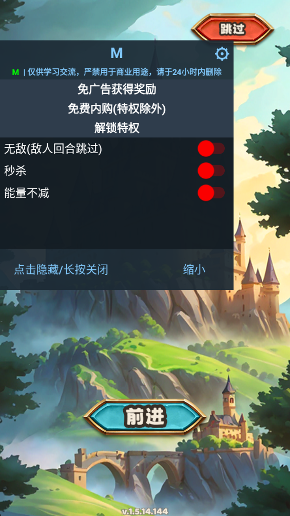 王座持有者是一款集卡牌、策略、冒险与英雄大乱斗于一体的游戏,你不仅要从一个堆满怪物和阴谋的世界中脱颖而出,还要扮演一位英雄,带领自己的王国迎接各种挑战,游戏的策略性极强,每一次构建卡组就像是一场脑力大考验,哪怕是最细微的变化,都会影响到最终的胜负。 王座持有者怎么玩1.进入关卡之后,你将扮演场上这名战士进入战斗。 2.点击屏幕上的区块进行移动。 3.进入之后就可以对敌人造成攻击了,拖动卡牌到敌人身上,点击卡牌可以查看卡牌详情。 4.这个绿色的石头就是你的回合数,一块石头代表一次攻击机会,卡牌上有绿石头标志的就是需要耗费绿色石头的。 5.打败小boss之后就可以提升你的属性。 6.在地图上移动时,也可以获得金币、新的卡牌或者是新的提升。 7.值得注意的是,有的卡牌耗费的绿色石头是多颗,使用的时候要注意哦。 菜单 1.免费内购 2.免广告获得奖励 3.无敌 4.秒杀 5.能量无限 6.货币不减反加 温馨提示前10关别拼命内购抽奖,会卡教程 |