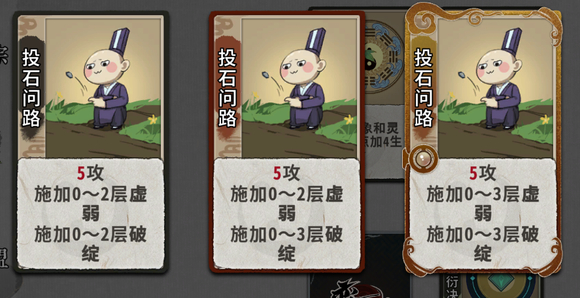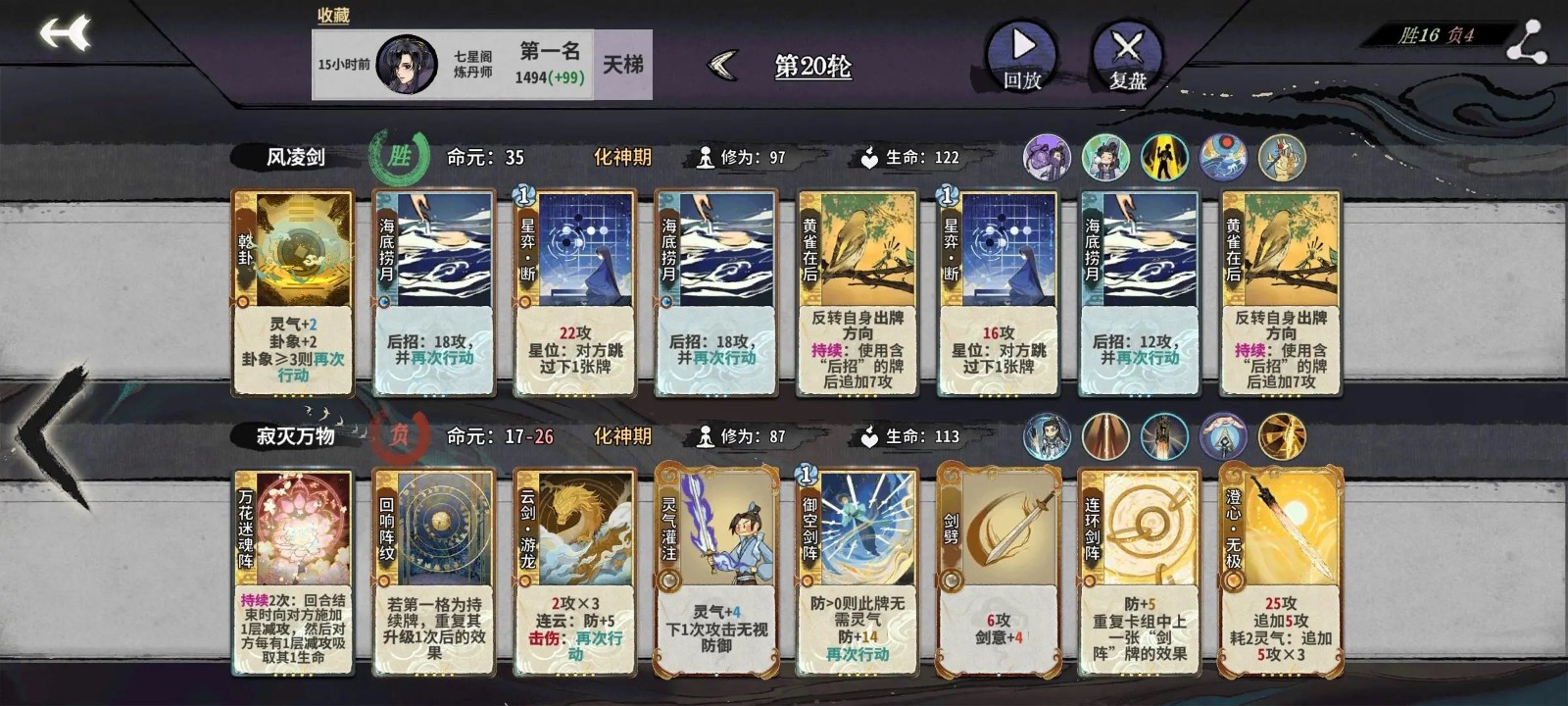 弈仙牌手游官方在端游的时期就广受玩家们的喜爱,现在也终于迎来了手游的推出,让玩家们在手机上也能畅快的进行对弈,该游戏包含了卡牌,仙侠,国风,自走棋等多种的元素,多样的卡牌卡组的搭配也让玩家们可以制定各种不同的战术,让游戏的高定制化可玩性大大增强。 弈仙牌手游亮点仙侠题材:以仙侠为背景的游戏,呈现出独特的仙侠风格和世界观,将玩家带入一个奇幻的仙侠世界。 精美画面:游戏拥有精美细腻的画面和卡牌设计,为玩家呈现出鲜明的视觉享受。 策略玩法:采用策略性战斗系统,玩家需要根据卡牌的特点和技能进行合理搭配和使用,以取得胜利。 丰富剧情:游戏中有丰富的剧情线索和故事情节,玩家可以体验到跌宕起伏的仙侠冒险。 弈仙牌手游特色卡牌系统:游戏中有大量的仙侠卡牌可供收集和升级,每张卡牌都有独特的技能和属性,玩家可以根据自己的喜好和战略进行选择和发挥。 仙侠角色:玩家可以选择不同的仙侠角色进行游戏,每个角色都有独特的技能和特点,给玩家带来不同的游戏体验。 多样玩法:游戏提供了丰富多样的玩法,包括战斗竞技、冒险探索、副本挑战等,玩家可以根据自己的兴趣选择不同的玩法进行游戏。 社交互动:游戏支持玩家之间的社交互动,玩家可以组建公会、参加公会战等活动,与其他玩家交流和合作。 弈仙牌角色推荐本文列举端游天梯环境下常见的全人物+副职业的搭配的强度梯度排行。具体的对应人物+副职业的玩法方向可以向大佬们请教,本文仅为科普性质~强度排名标准: T0-扛把子,产出大量万分 T1-有强度,绝活哥手里相当于T0T2-勉强可玩 T3-狗都不玩 牧逸风 T0:画大师兄 T1:琴大师兄 T2:符大师兄,田大师兄 T3:丹大师兄 炎雪 T0:符炎雪 T1:丹炎雪 T2:琴炎雪 T3:阵炎雪 龙瑶 T0:琴龙瑶 T1:符龙瑶 T2:画龙瑶,丹龙瑶 T3:无 陆剑心 T0:无 T1:无 T2:田剑心 T3:符剑心,丹剑心 林小月 T0:玄银甲 T1:画猫猫,琴猫猫 T2:符猫猫,田猫猫 T3:无 谭舒雁 T0:大成田雁 T1:丹雁 T2:琴雁,田雁 T3:阵雁,画雁 炎尘 T0:人机炎尘 T1:琴毒炎尘 T2:丹雷炎尘,符毒炎尘 T3:符雷炎尘 曜灵 T0:人机鼠鼠 T1:无 T2:丹鼠鼠,符鼠鼠,画鼠鼠,田鼠鼠 T3:无 吴策 T0:田吴策,画吴策 T1:丹吴策 T2:琴吴策,符吴策 T3:无 姜袭明 T0:阵老登 T1:丹老登 T2:琴老登,画老登,符老登,田老登 T3:无 吾行之 T0:火灵窑土 T1:无 T2:丹行之 T3:阵行之 杜伶鸳 T0:无 T1:丹双鸳伶鸳,符木伶鸳,丹水伶鸳 T2:阵水伶鸳,琴水伶鸳 T3:无 慕虎 T0:人机老虎 T1:无 T2:画老虎 T3:丹老虎,琴水老虎 南宫生 T0:丹男童 T1:无 T2:符木男童 T3:琴水男童 花沁蕊 T0:水灵海龙啸 T1:田花花 T2:丹花花,符花花 T3:阵水花花 弈仙牌攻略新赛季吾行之副职推荐选炼丹师,丹吾行之相比于其他副职业,具有打法流派多、前期过渡更稳定等优势,新手入门和高手上分均相对稳定。新赛季吾行之打法流派推荐泉涌碎击流或丹水,至于选择原因,由于官方禁止剧透,所以在正式服上线后单独做一期分析,敬请期待! 三.吾行之前期过渡和运营 1.吾行之仙命选择和上本时机 练气:前2轮尽量换牌,战力最大化,确保拿到被动换牌次数。 筑基:第3轮上筑基,必选五行印记,即便有些流派用不上这一仙命,但存在这一流派不胡而被迫转玩其他流派的情况,所以在考虑稳定性的前提下,必选五行印记。第3轮可换牌1-3次(根据战力选择),从第4轮开始每轮换牌1次,在尽量留换牌次数的情况下提战力。 金丹:为了提前上本和后期,尽量选修为,水灵传承(泉涌或水阵后期是核心牌)>雷劫>顿悟>其他2牌仙命>机缘造化>葫芦。每轮换牌1次。 元婴:第8轮上元婴(因为丹吾行之是元婴战神,所以提前卖牌上元婴,换空牌,提战力,滚雪球),所以金丹尽量选修为,且元婴也需要尽量选修为补牌(否则上阵的牌不满)。元婴仙命:水灵传承>雷劫>其他2牌仙命>顿悟>机缘造化>五行化身。元婴需要一直换光换牌次数提战力,由于化神仙命五行传承减5换牌次数的机制,尽量用光换牌次数再上化神(除非质量已经很高、关键牌都有了,才留次数)。 化神:需要抢修为且血量健康时,雷劫/顿悟优先级更高,否则一般选五行传承。泉涌碎击流:不需要抢修为时,五行循环优先级最高;选五行传承时,没有泉涌就选水,有泉涌没飞梭时可选金,泉涌和飞梭都有一般选木找柳纷飞。丹水:换牌次数为0选五行传承,换牌次数大于0时可选水灵传承。 2.前期过渡 一般为混合土和金牌的过渡方式,可使用的过渡牌有:所有土/金牌、五行刺、地灵丹、小还丹、驱邪丹。 筑基后的强力过渡阵容举例: 土灵阵+土灵碎+五行刺+土灵印+丹 金灵针+水灵波澜+五行刺+丹+金/土灵印 四.泉涌碎击流 1.元婴过渡 泉涌、碎击、腾浪/潜遁、玫刺/巡林、瞬燃/赤焰/灼心、扬尘/断崖、飞梭/铁骨 2.标准阵容 吾行之的泉涌碎击流一般激活金用2张飞梭再动更优。例如: 飞梭泉涌,柳纷飞碎击,飞梭烈燎原/玫刺,瞬燃扬尘/合八荒 其中,当质量够高,可以3-4动杀时,土牌用扬尘最好,满级扬尘的16点基础伤害可以补伤害;在第一张碎击满级后,如果有第二张碎击,可以上2张碎击伤害更高;当泉涌没有满级,灵不够时,火牌可以用灼心,或是用玫刺+瞬燃的组合可比烈燎原少1灵。 泉涌碎击流3-4动杀 五.丹水 1.元婴过渡 水阵、聚灵丹、腾浪、潜遁、汹涌、流转、飞梭/其他金牌、铁骨 丹水元婴过渡举例 丹水元婴过渡腾浪越多越好,元婴期腾浪尽量不合,平铺多张腾浪多叠水势,金