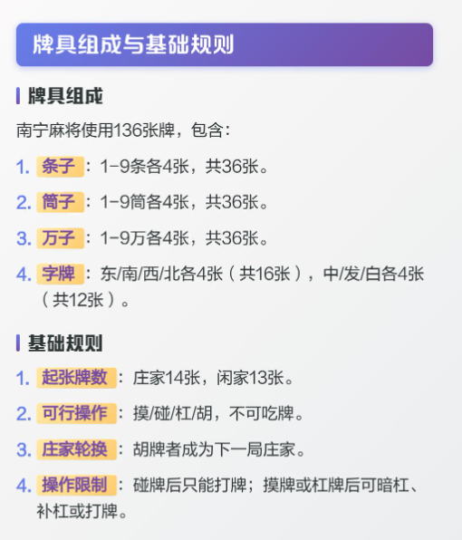 广西麻将中的十三幺是顶级牌型,其倍数计算因地域规则差异呈现多样性。该牌型由13种幺九牌(万、条、筒的1与9)及全部7张字牌(东、南、西、北、中、发、白)组成,需集齐13张不同牌型后配任意一张成对,堪称“国士无双”的终极形态。 牌型构成与核心规则 十三幺结构严苛:必须包含万子的一万、九万,条子的一条、九条,筒子的一筒、九筒,以及全部7种字牌,且13张牌互不重复。最终需通过摸牌或他人点炮形成对子完成胡牌。广西部分规则要求“门清”状态(全程不吃、不碰、不杠),进一步增加难度。 地区倍数差异解析 1.柳州规则:十三幺基础倍数为2番,自摸时每家额外支付2番,形成“2番底+2番自摸”叠加模式。若叠加其他牌型(如碰碰胡),总分值可能突破常规上限,曾有玩家单局收益超常规3倍。 2.南宁玩法:结合“码数”系统,胡牌者通过自摸触发奖励码,底分与码数相乘后收益显着。例如某局自摸九条触发6个码,单局收益达7×48分,实现逆转。 3.其他地区:采用固定倍数模式(如88番),或根据自摸、抢杠等条件浮动调整。 策略与注意事项 牌型优先级:职业玩家优先保留现存量少的牌张。若中盘某字牌已现三张,则转保幺九牌;若字牌完整度高,则采取“先字后幺”策略。 风险控制:听牌阶段需动态防御,通过观察对手出牌节奏调整策略。例如记录弃牌顺序预判听牌范围,避免被截胡。 规则确认:广西各地规则差异大,需提前明确十三幺的承认条件、倍数计算及附加规则(如是否允许抢杠胡)。曾有玩家因未确认柳州“门清限制”导致诈胡赔偿三家。 十三幺既是技术巅峰的象征,也是规则多样性的体现。从柳州的番数叠加到南宁的码数激励,各地玩家对其价值认知各有侧重。精准掌握本地规则与倍数计算,方能在牌局中实现“一幺定乾坤”的传奇时刻。 |
