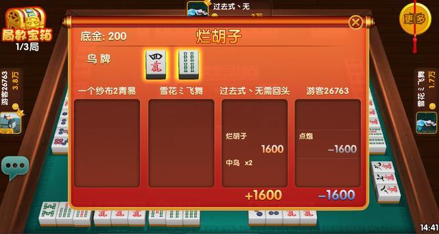 星辰长沙麻将扎中2鸟 扎鸟: 麻友们在胡牌后,长沙麻将将进行扎鸟环节; 鸟的计算方法为:以庄家为起点,按牌面数字逆时针计算; 扎鸟分为点炮扎鸟和自摸扎鸟2种情况; 点炮时:鸟如果扎在胡牌方或者点炮方,既为中鸟,点炮人出双倍; 自摸时:鸟如果扎在胡牌方,那所有人给双倍,如果扎在其中一位麻友身上,只此一个给双倍。 算分逻辑: 1.优先结算起手胡得分; 2.起手胡可以叠加;(允许多个起手胡存在,叠加算分) 3.庄家起手胡,得分+1; 4.起手胡算自摸,其他三家都要给分; 5.在算扎鸟倍数,中1鸟得分*2,中2鸟得分*4,如果庄家中2鸟,所有人给4倍;(也有部分位置中双鸟是3倍) 6.根据牌局的番型计算其他得分,小胡统一为1番,大胡统一为6番; 7. 同理庄家+1,这也是为什么长沙麻将有种说法叫67片的原因了; 8.总分计算:起手胡得分+番型得分; PS:长沙麻将玩法独特,有自己特色的起手胡玩法,还有胡牌后的扎鸟玩法,让麻将本身多了很多特色性质,是一款不可多得的好地方麻将。