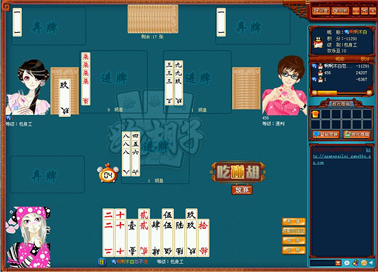 二、游戏玩法 游戏人数 3人。 游戏用牌 一副字牌,共80张牌。 1、牌面 字牌的牌面都是中国汉字的数字,由如下几种牌组成: 小写“一”、“二”、“三”、“四”、“五”、“六”、“七”、“八”、“九”、“十”各四张; 大写“壹”、“贰”、“叁”、“肆”、“伍”、“陆”、“柒”、“捌”、“玖”、“拾”各四张。 2、牌的颜色 字牌的颜色分红黑两种,也因地而异,在湖南地区,“二”、“七”、“十”和“贰”、“柒”、“拾”为红色,其余为黑色。 牌面:牌有字的一面。 牌背:牌无字的一面,各牌牌背相同。 明示:牌面向上,置于桌面,为明示。 暗置:牌背向上,牌面向下。 墩:砌完牌后,留在桌面上的余牌称为墩。 牌点:各牌的数值,称为牌点,牌点不区分大、小字,如:伍和五的牌点均为5。 定庄:每新局开始随机决定一个玩家成为庄家,之后的局,上局胡牌的玩家成为庄家。如果荒庄,由庄家继续做庄,连续3次荒庄,则由庄家的下家做庄。 任意一个玩家离开游戏,算作新的一局开始。 砌牌:整副牌共80只,砌牌时,庄家砌20只,最后补一只亮张。闲家砌20只,墩上留19只作为底牌。 亮张:砌牌时,庄家所砌的最后一张牌,应由电脑在墩上明示各玩家,称为亮张,这只牌称为亮张牌。 自动提牌: 手中有一门提牌:砌牌后玩家手上如果有一门4只相同的牌,则在亮张后,电脑自动为玩家提牌。如果庄家原来有一门提牌,亮张构成第二门提牌,则亮张后庄家不用打牌。轮到下家摸牌。 手中有两门提牌:如果有两门提牌,在亮张后,电脑自动为玩家提牌。 对庄家来说,如果亮张的牌正好构成第3提或第5坎,则庄家天胡而且自摸。如果没有构成,则亮张后庄家不用打牌。轮到下家摸牌。 对其他两个玩家,第一次进牌后不用出牌,直接轮到下家摸牌。如果第一次进牌是跑或提,则第二次进牌后不用出牌。以此类推直到不以跑或提的方式进牌。 手中有三门提牌或以上:如果有三门或以上,则不用出现自动提牌步骤,直接胡牌。 牌型和进牌说明: 对:玩家手中两只完全相同的牌称为一对。 坎:玩家手中三只完全相同的牌称为一坎。 碰牌:玩家手中有一对牌,当其他玩家打出或摸出一只相同的牌,则可以碰牌,碰牌后将三只牌全部明示于桌面。 忍碰:当玩家有机会碰牌,但玩家考虑根据实际情况自愿不碰的,称为忍碰。 偎牌:玩家手中有一对牌,当摸起一只相同的牌,玩家必须将手中的一对连同摸起的牌放置于桌面,且不能明示给其它玩家,称为偎。 臭偎:当玩家忍碰后,玩家自己又偎牌,称为“臭偎”,臭偎必须一只牌明示,另两只暗置于桌面。 提:①玩家手中四只完全相同的牌称为一提,当手中有提后在摸牌前必须放置于桌面,并且必须其中一只明示各玩家。 ②玩家手中有一坎,当玩家摸起相同的一只牌后,必须四只放置于桌面,并且必须其中一只明示各玩家,也构成提。 ③玩家桌面已有偎的牌,当玩家摸起相同的一只牌后,必须和原来的三只一起放置于桌面,并且必须其中一只明示各玩家,也构成提。 跑:①玩家手中有一坎牌,当其他玩家打出或摸出一只相同的牌,玩家必须跑牌,跑牌后4只牌必须明示于桌面。 ②玩家桌面已有碰的牌,当自己或其他玩家摸出相同的牌后,必须跑牌,4只牌明示于桌面。 ③玩家桌面已有偎的牌,当其他玩家打出或摸出相同的牌后,必须跑牌,4只牌明示于桌面。 一句话: ①三只牌点连续且大小相同的牌组合,称为一句话,大字和小字不能混合组成一句话。 ②特例:贰柒拾或二七十也构成一句话,大字和小字不能混合组成一句话。 绞:三只牌点相同但大小不相同的牌可以组成绞牌。 吃牌:当上家打出或摸出一只牌,或玩家自己摸出一只牌,可以和玩家的牌合成一句话或绞牌时,玩家可以吃牌。吃牌后将三只牌全部明示于桌面。 臭牌:当上家打出或摸出一张牌或自己摸出一张牌,玩家可以吃、碰却选择不吃、不碰时,这张牌就成了该玩家的臭牌,第二次牌桌上再出现同张牌时,该玩家不得再吃或者碰。 任何人也不能吃或者碰自己曾经打出过的牌,不管这张牌后来有人打出还是自己摸到的。但如果玩家持有臭牌,即使别人打过或者摸出过的牌,还是可以偎牌。 例子:玩家有“一、二、二、三、贰”等牌,上家打出“二”,玩家没有吃或碰。那么以后再有人摸到或打出“二”时,该玩家就不可以吃或者碰了。如果是自己摸到的“二”则必须臭偎。 特殊:1.如果该玩家想吃牌却被另外一个玩家碰了牌,那么不算该玩家的臭牌。 2.可以胡臭牌:如果摸出的臭牌也是玩家要胡的牌,玩家可以胡牌。 比牌:吃牌时,如果玩家手上有吃进的那张牌,而且那张牌还可以组成一组吃的牌型,必须一起扔出来,称之为比。顺序为先吃牌,再比牌。如果玩家选择不比,则之前的吃牌效果取消。如果要比的牌有两张,则都要比出来,可以一次比出来,也可以先比一门牌,再比第二门牌。如果玩家符合吃牌的条件但达不到比牌的条件,即要比的那张牌无法和手上剩下的牌组成吃的牌型,则不允许吃牌。 例子: 1.玩家用“二、三”吃了上家的“一”,玩家手上也有一个“一”,并且只要这个“一”可以和剩下的牌组成可以吃的牌型,无论是“一一壹”或“一壹壹”还是“一二三”,都要把手上剩下的“一一壹”或“一壹壹”还是“一二三”一起打出来明示于桌面。如果玩家不一起打出来,则之前用“二、三”吃“一”的效果取消。如